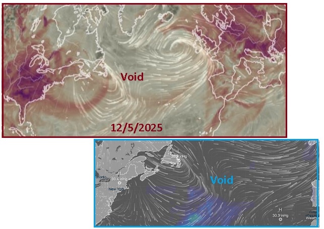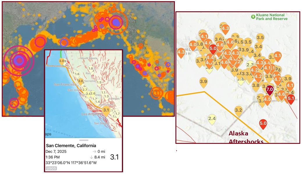 8.12.2025: Корректировка линии разлома Нью-Мадрид происходит итеративно: одна последовательность завершается, а затем начинается другая. Движения плит в других местах могут запустить последовательность, например, «Африканский ролл», в результате которого Африка опускается в северо-восточном углу, увлекая за собой прикреплённую юго-восточную часть Североамериканского континента. Ещё одно движение плиты, которое может запустить последовательность, — это сжатие Тихого океана из-за того, что Евразийская плита погружается в Тихий океан. Очевидно, что за последние несколько дней произошло как расширение Атлантического океана, так и сжатие Тихого океана.